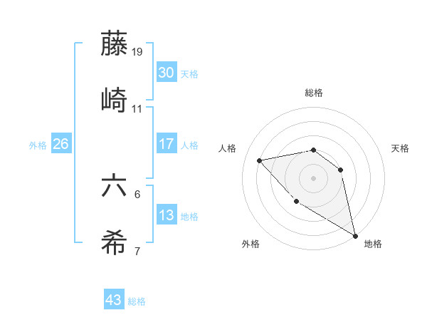 藤崎 六希さんの天格は30画の2点!