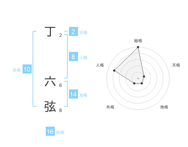 丁 六弦さんの総格は16画の5点!