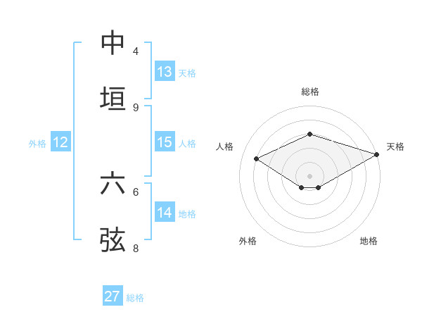 中垣 六弦さんを姓名の画数から五運を鑑定