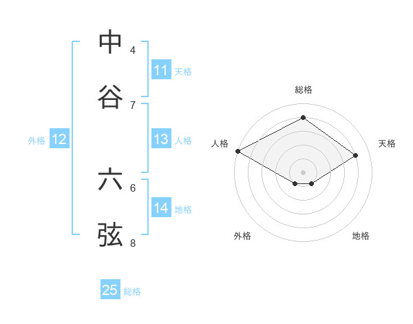 中谷 六弦さんの総格は25画の4点!