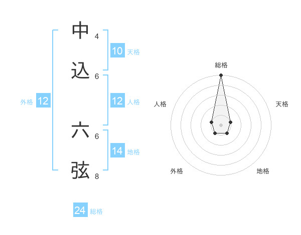 中込 六弦さんの総格は24画の5点!