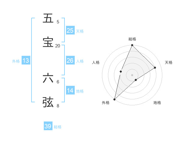 五宝 六弦さんを姓名の画数から五運を鑑定