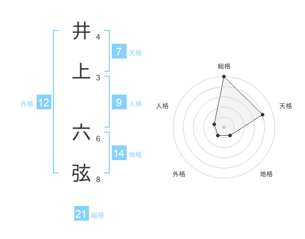 井上 六弦さんの総格は21画の5点!