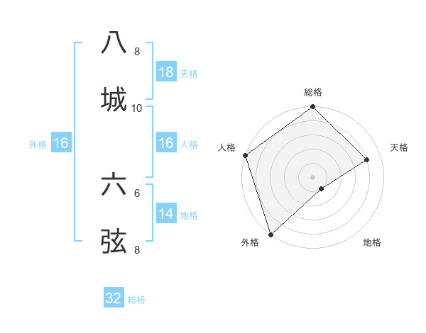 八城 六弦さんの総格は32画の5点!