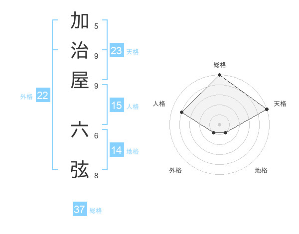 加治屋 六弦さんを姓名の画数から五運を鑑定