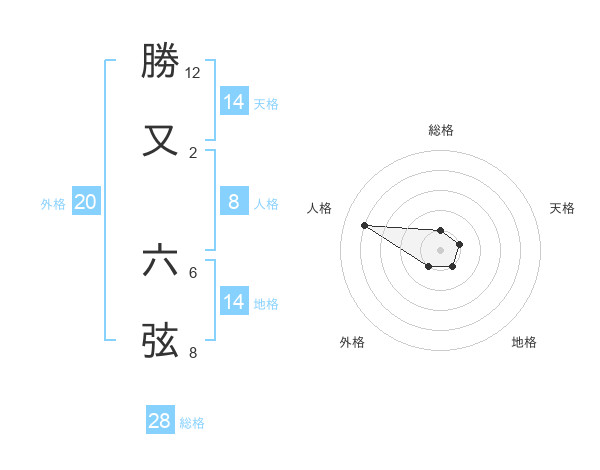 勝又 六弦さんの天格は14画の1点!