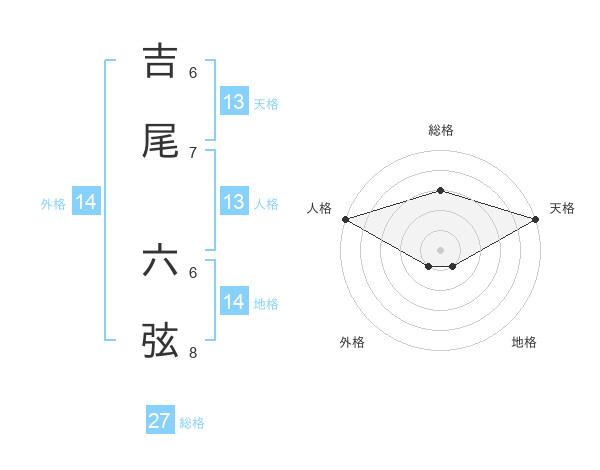 吉尾 六弦さんを姓名の画数から五運を鑑定