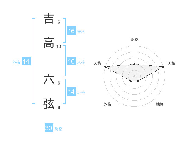 吉高 六弦さんの天格は16画の5点!