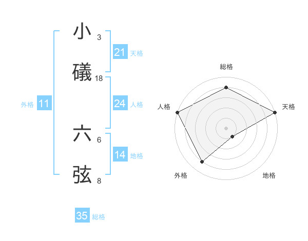 小礒 六弦さんを姓名の画数から五運を鑑定