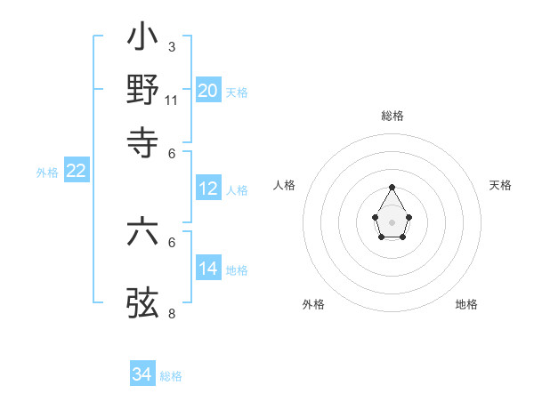小野寺 六弦さんの総格は34画の2点!