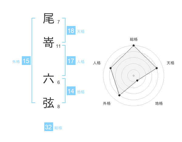 尾嵜 六弦さんを姓名の画数から五運を鑑定