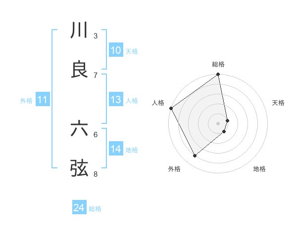 川良 六弦さんの総格は24画の5点!