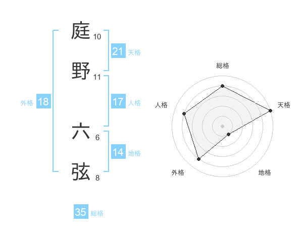 庭野 六弦さんの総格は35画の4点!