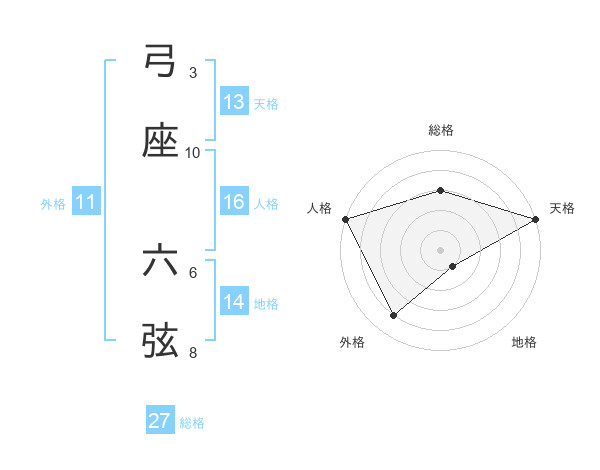 弓座 六弦さんの天格は13画の5点!