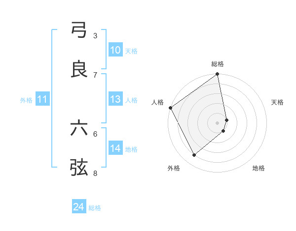 弓良 六弦さんの総格は24画の5点!