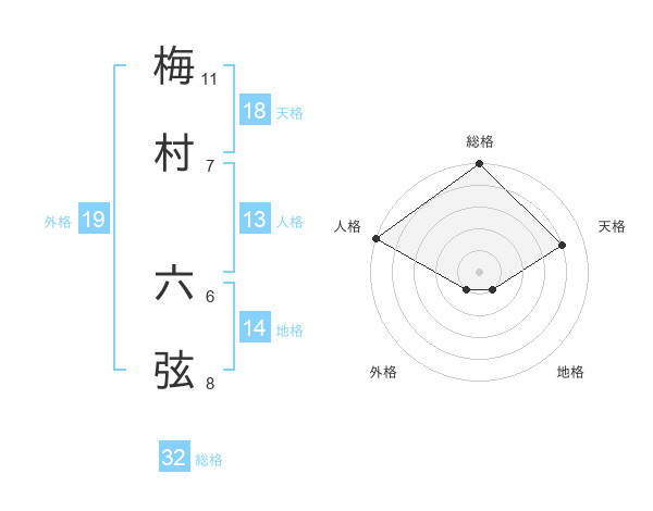 梅村 六弦さんの総格は32画の5点!