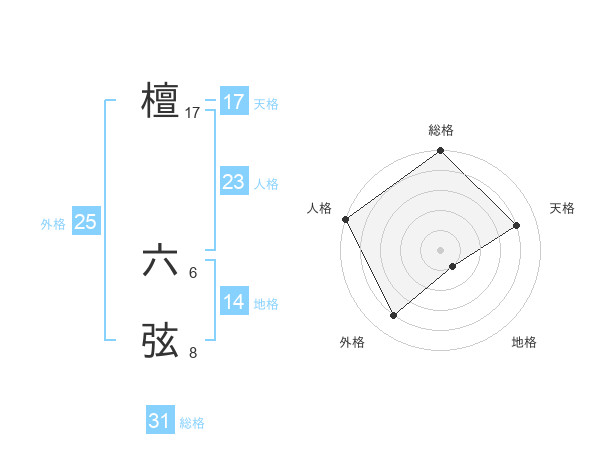 檀 六弦さんの総格は31画の5点!