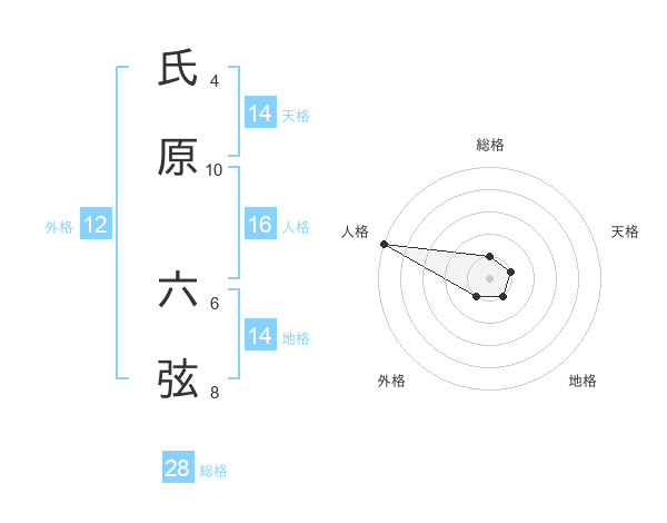 氏原 六弦さんを姓名の画数から五運を鑑定