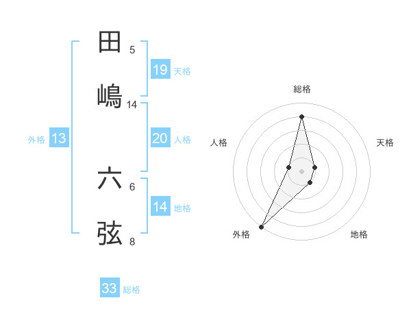 田嶋 六弦さんを姓名の画数から五運を鑑定