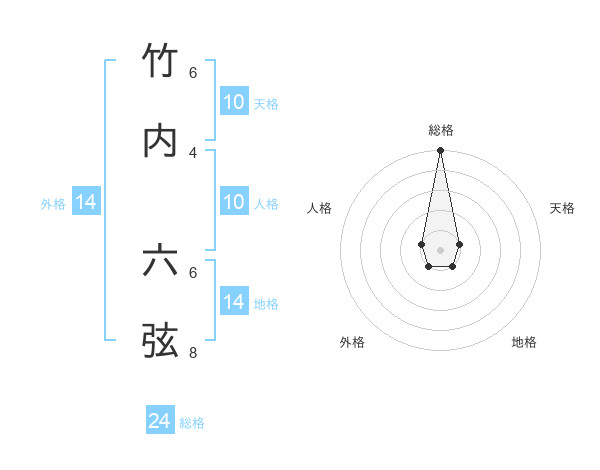 竹内 六弦さんを姓名の画数から五運を鑑定