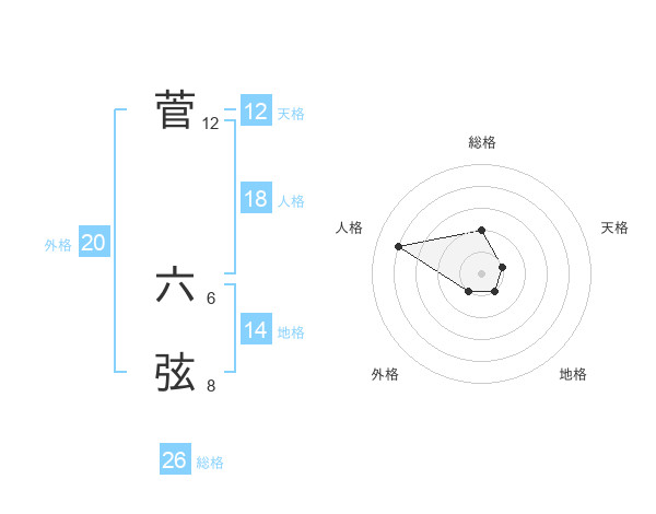 菅 六弦さんの総格は26画の2点