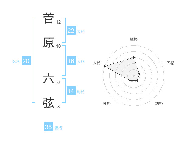 菅原 六弦さんを姓名の画数から五運を鑑定