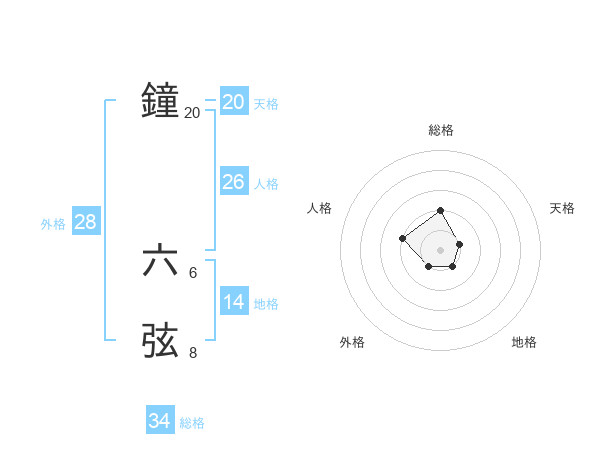 鐘 六弦さんの天格は20画の1点!