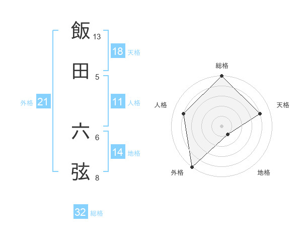飯田 六弦さんの総格は32画の5点!