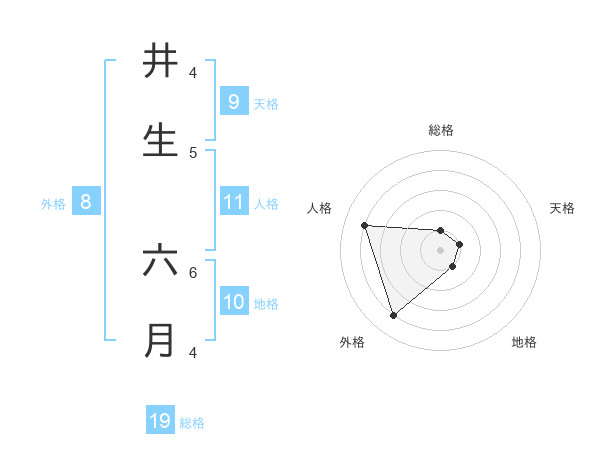 井生 六月さんを姓名の画数から五運を鑑定