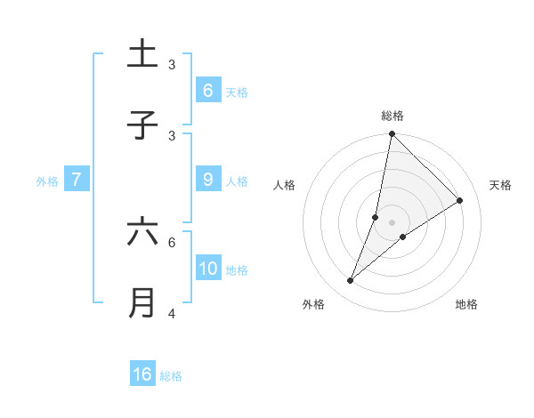 土子 六月さんの総格は16画の5点!