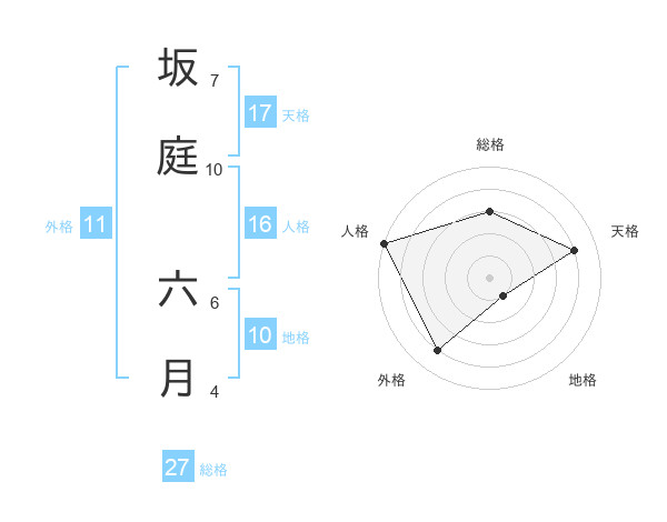 坂庭 六月さんの総格は27画の3点!