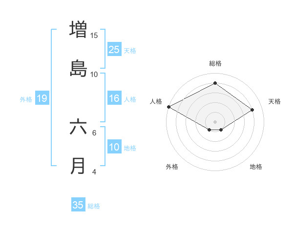 増島 六月さんの総格は35画の4点!