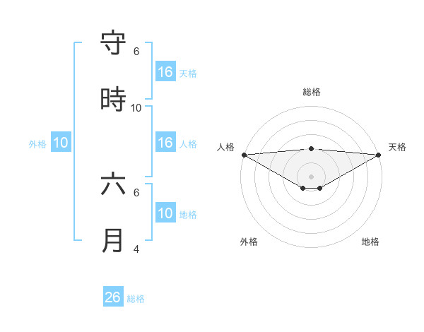 守時 六月さんの総格は26画の2点!