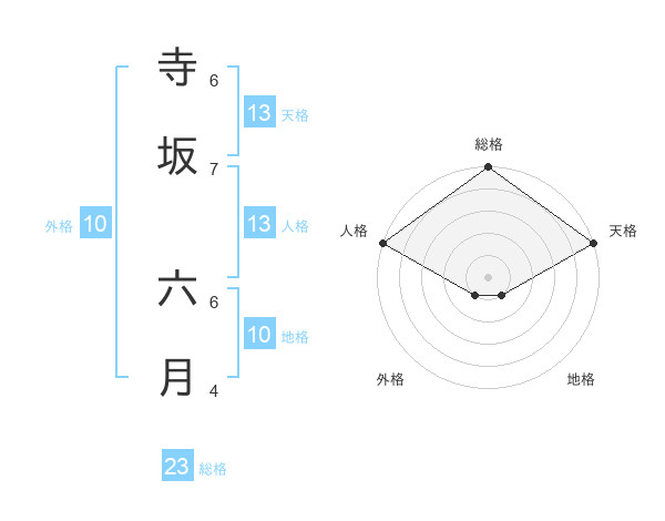 寺坂 六月さんを姓名の画数から五運を鑑定