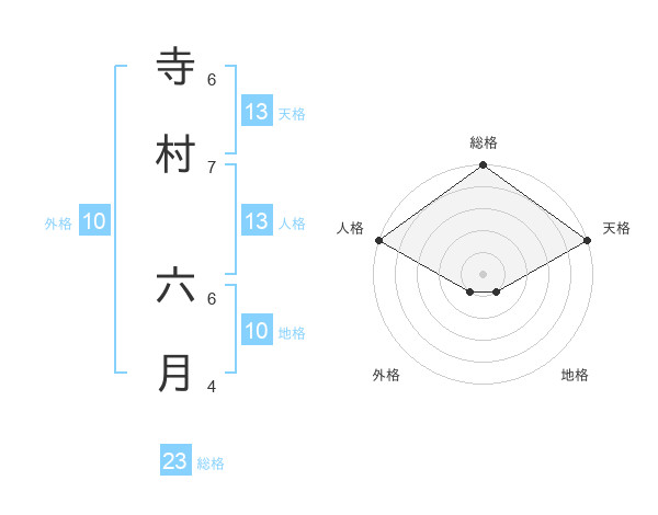 寺村 六月さんの天格は13画の5点!