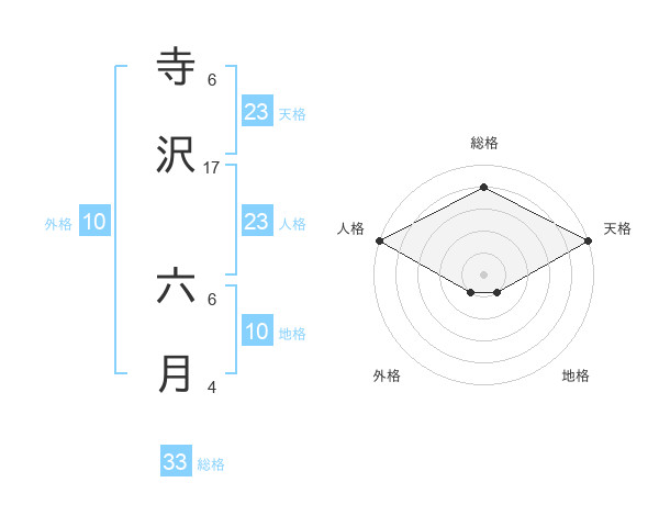 寺沢 六月さんを姓名の画数から五運を鑑定
