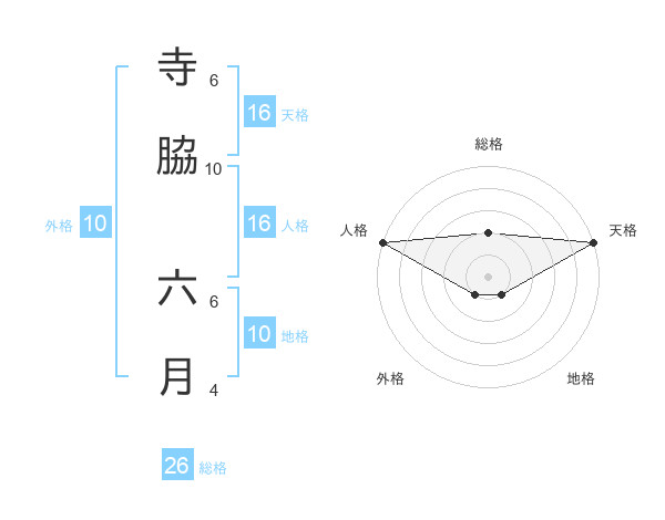寺脇 六月さんを姓名の画数から五運を鑑定