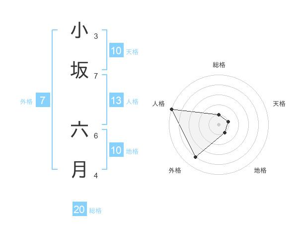 小坂 六月さんの総格は20画の1点!