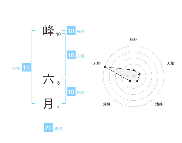 峰 六月さんの総格は20画の1点!