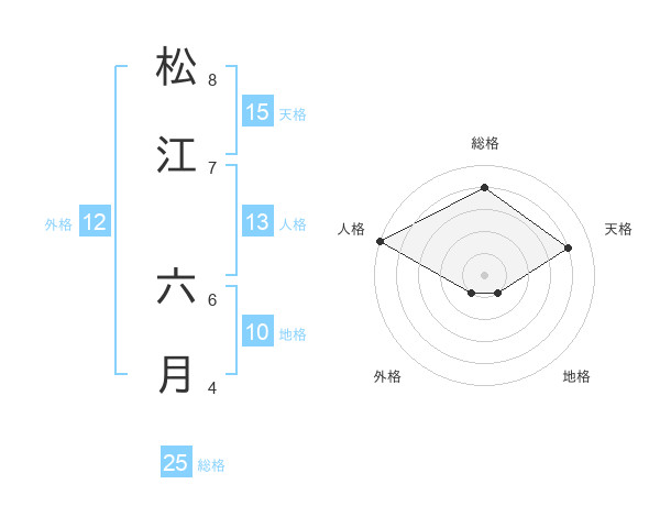 松江 六月さんの総格は25画の4点!