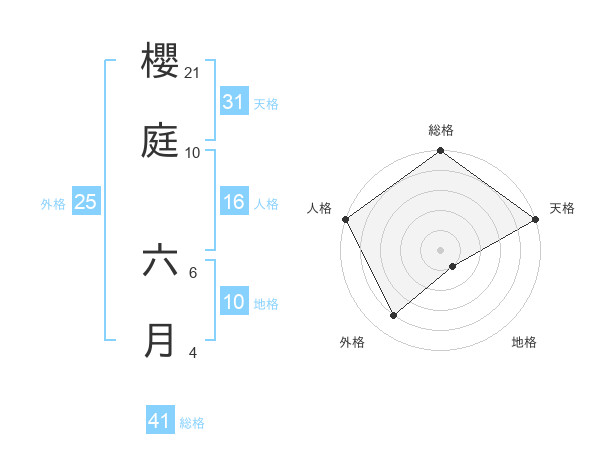 櫻庭 六月さんの総格は41画の5点!