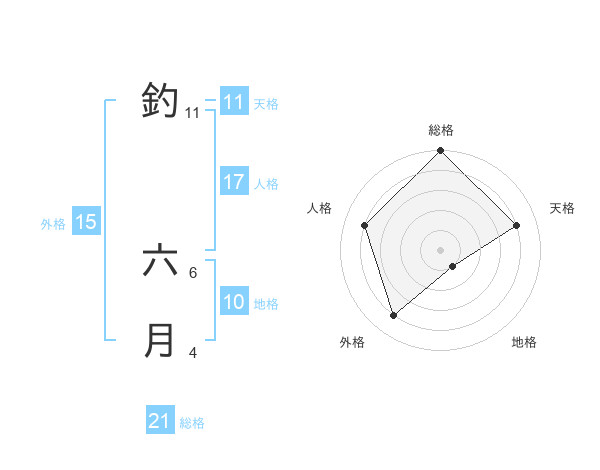 釣 六月さんの天格は11画の4点!