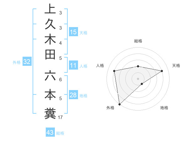 上久木田 六本糞さんを姓名の画数から五運を鑑定