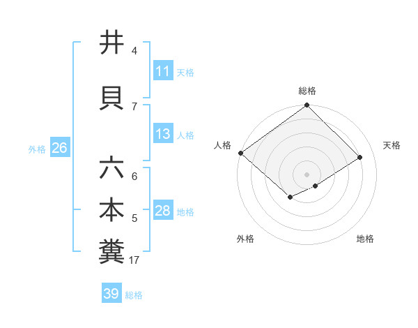 井貝 六本糞さんを姓名の画数から五運を鑑定