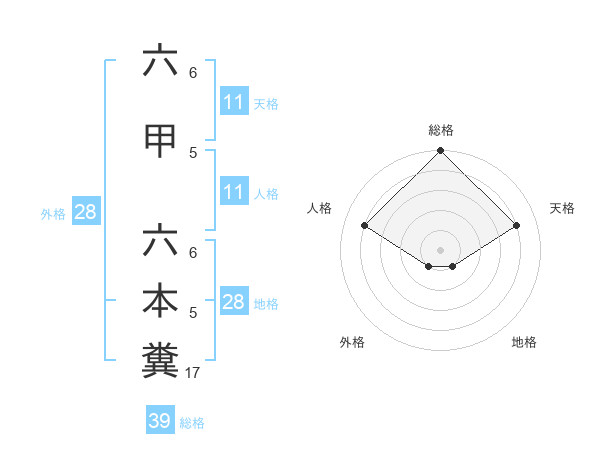 六甲 六本糞さんを姓名の画数から五運を鑑定