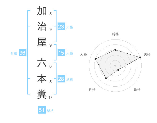 加治屋 六本糞さんの総格は51画の3点!
