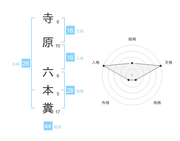 寺原 六本糞さんを姓名の画数から五運を鑑定