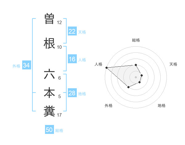 曽根 六本糞さんの総格は50画の2点!