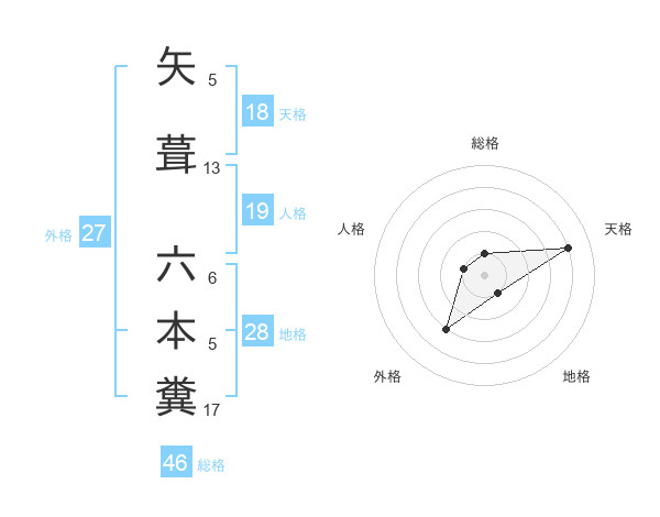 矢葺 六本糞さんの総格は46画の1点!