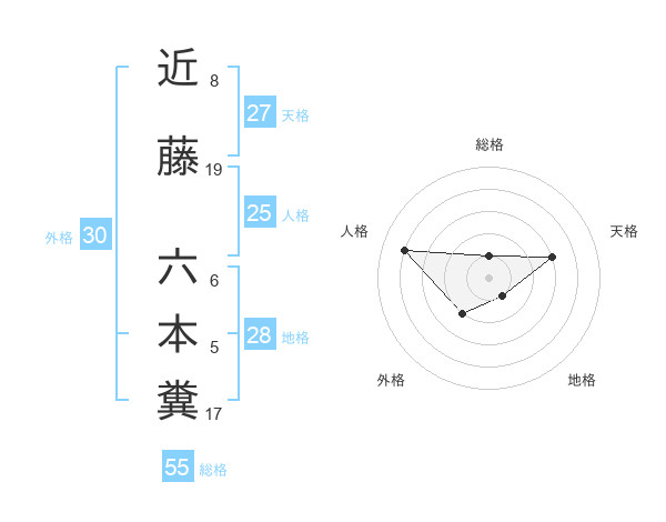 近藤 六本糞さんを姓名の画数から五運を鑑定